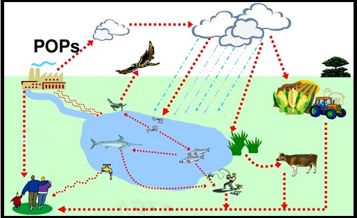 持久性污染物高持久性和半揮發性的特點使得它們能在比較溫暖的地區從土壤或水體中以蒸汽形式進入大氣或者吸附在大氣中顆粒物上進行大氣遠程遷移,并在一定條件下沉降到地表,導致世界各地的持久性有機污染物的存在,即使在像南北極圈以及世界第三極青藏高原以及海拔較高的高山地區這樣比較寒冷且遠離污染源的偏遠潔凈地區的土壤、水體、生物體內也能發現持久性有機污染物的存在,此外最新的研究表明世界海洋最深處的馬里亞納海溝表層沉積物中也具有非常高濃度的持久性有機污染物。此外它們低水溶性和高脂溶性的特點,導致了它們在生物體的脂肪組織中的生物積累效應。在全球范圍內,持久性有機污染物在土壤、沉積物、魚類脂肪、陸生動物和人類母乳中都有發現。由于食物鏈的放大效應,在南、北極地區的海豹、北極熊和因紐特人母乳內多氯聯苯類濃度為水體中濃度的千萬倍以上。