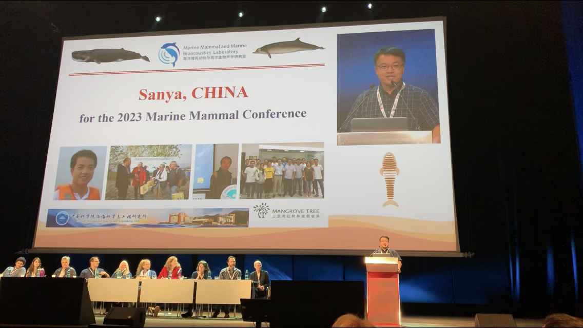 12月10日晚,李松海研究員在大會主會場為申請三亞作為2023年世界海洋哺乳動物雙年會主辦地進(jìn)行了口頭報告,介紹了三亞獨特的地理位置、承辦會議條件及南海獨特的鯨類資源分布情況。本次競爭主辦權(quán)的城市還包括新加坡和澳大利亞珀斯