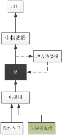 ISMIFF的作業流程圖1所示。作業開始前,需將裝置內的管路清洗并充滿無菌水。著陸器坐底后,為避開浮塵影響,延時0.5-2小時后向富集裝置發送運行指令,富集裝置控制泵開始運轉,將海水泵入含有0.22 μm生物濾膜(用于截留微生物)的過濾艙中。裝置內的壓力傳感器實時監控過濾管路中的液體壓力,根據壓力反饋控制泵的輸出功率,從而使管路中液體壓力保持在合理范圍。當富集裝置過濾海水體積達到預設置后,通過電磁閥切換試劑管路,將固定液注入過濾艙,以實現樣品原位固定。著陸器回收后,立即在實驗室進行濾膜樣品的處理保存。