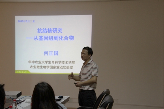 3月30日,應(yīng)韓壯博士邀請(qǐng),華中農(nóng)業(yè)大學(xué)何正國(guó)教授到訪三亞深海所,并做了題為“抗結(jié)核研究---從基因組到化合物”的學(xué)術(shù)報(bào)告。