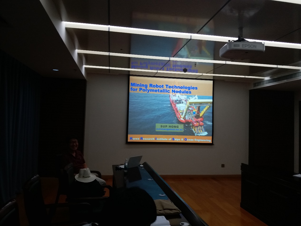 從1994年開始SUP HONG所帶領的采礦團隊相繼完成了MineRo-1,MineRo-2,Mining Robot,Pumpi, Buffee等逐漸成熟的采礦設備,并介紹了很多在海試中可能出現或者已經出現不可避免的問題,值得我們考慮和深思。在關于Mining Robot的介紹中SUP HONG研究員耐心的解答我們提出的關于布放回收,行走軌跡以及工程機械方面的難題。也為我們今后海試過程中可能出現的問題進行了警示。同時提醒我們在海底作業海底資源開采的過程中,保持海底的自然生態環境和安全是最重要的事情。