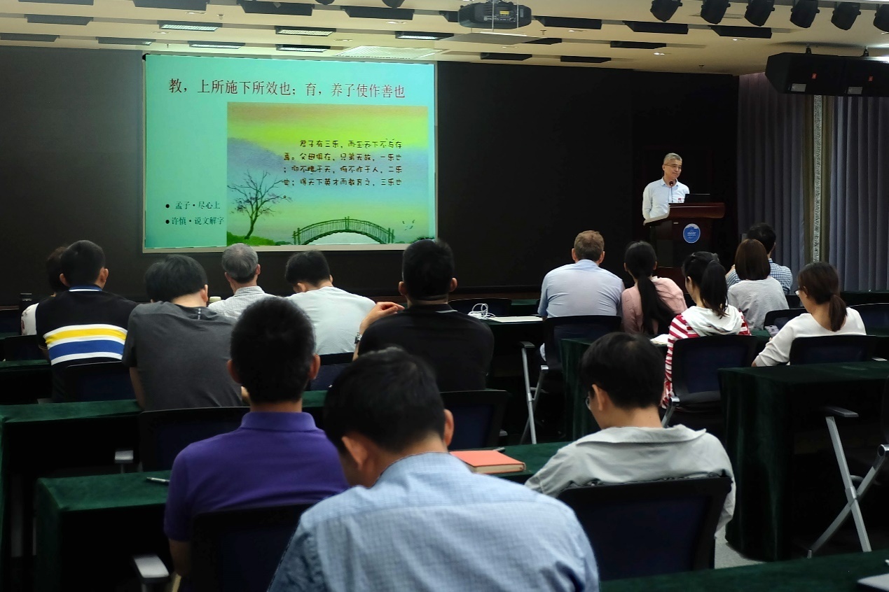 上午題為《師者仁,德為先》的報告主要面向全體研究生導師。馬石莊教授從 “大道至簡、德育為先、師者仁也”三方面,圍繞新時代教師如何“傳道、授業(yè)、釋惑”探討了導師應具備的職業(yè)道德規(guī)范、標準。馬石莊教授列舉多個鮮活生動的事例,探討了“如何做有仁愛之心的好老師”、“如何做黨和人民滿意的教師”等熱點話題。馬石莊教授還介紹了中西方古代、近代和當代的哲學家、教育家和科學家對教育的理念及認知,并結合中國科學院大學研究生的特點,用鮮活生動的案例和幽默詼諧的語言,分享了自己的經(jīng)歷、經(jīng)驗和觀點,引發(fā)了導師們和在場聆聽職工的共鳴和思考。