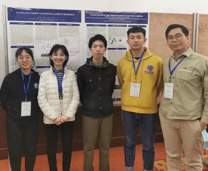 孫既粵和黃盈盈分別作了題為“Crystal Growth of Gas Hydrate Formed in Fused Silica Capillary” (作者:孫既粵、辛洋、周義明、蔣磊)、“0.1-2 MPa, 273K-373K 條件下 H2S 在純水和 NaCl 水溶液中擴散系數的測定”(作者:黃盈盈、蔣磊、周義明、陳穎)的墻報展示。此次會議,鍛煉了年輕科研人員的學術交流能力,增進了同行間的了解與合作,受到了參會專家的一致好評。