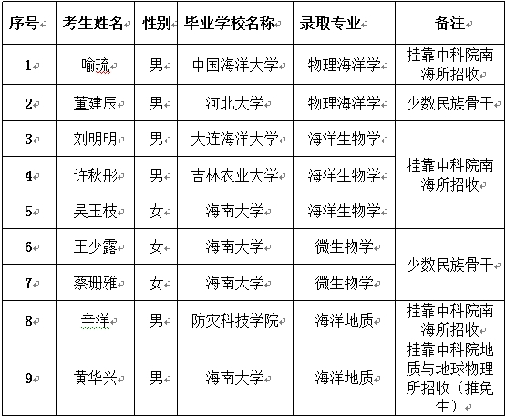 2014年三亞深海所攻讀碩士學(xué)位研究生擬錄取名單(含推免生)