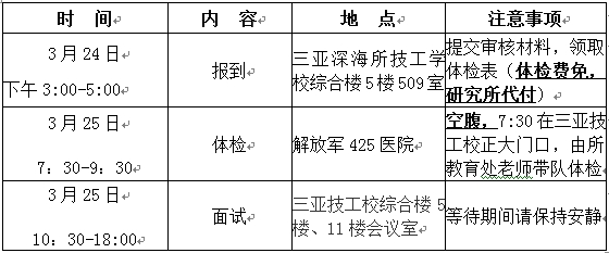 2.請考生自行提前聯(lián)系住宿,復試的來回路費、食宿費自理,三亞深海所給予每生500元補貼。