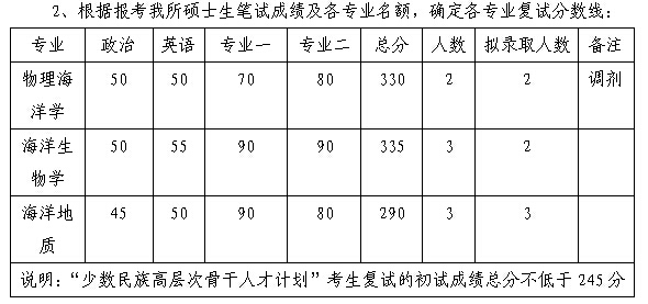 1、復(fù)試采用口試與筆試相結(jié)合方式進(jìn)行。筆試各專業(yè)分別對(duì)應(yīng)考試《海洋生物學(xué)》《物理海洋》《海洋地質(zhì)與地球化學(xué)》,統(tǒng)一參考書(shū)目為《海洋科學(xué)導(dǎo)論》(高等教育出版社,作者馮士筰、李鳳岐)。英語(yǔ)聽(tīng)力和口語(yǔ)測(cè)試由老師通過(guò)口試方式完成,專業(yè)復(fù)試內(nèi)容主要考察考生的綜合素質(zhì)與培養(yǎng)潛質(zhì)以及對(duì)學(xué)科基礎(chǔ)知識(shí)、所學(xué)專業(yè)知識(shí)的掌握程度等;思想品德的面試包括考生的政治態(tài)度、思想品德、工作學(xué)習(xí)態(tài)度、團(tuán)隊(duì)合作精神、科研道德、遵紀(jì)守法以及心理素質(zhì)等內(nèi)容。
