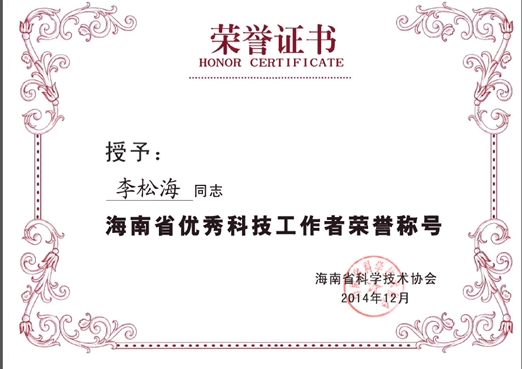 李松海研究員獲“海南省優(yōu)秀科技工作者”榮譽(yù)稱號(hào)