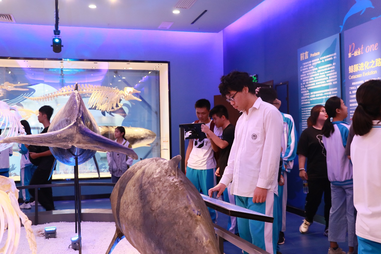 當天,潛航員李保生給同學們帶來了深海科普講座,他向同學們介紹了“深海勇士”號載人潛水器的技術參數和參加的科考航次,一邊講述自己親歷的下潛故事,一邊展示“深海勇士”號視角拍攝的深海視頻,同學們紛紛感嘆海底世界的奇妙。隨后,在工作人員的帶領下,同學們參觀了工程實驗室,零距離接觸深淵著陸器、深海機器人等深海裝備;觀看了深淵科考紀實片,感受了深淵科考的艱辛;參觀了鯨豚標本館,了解了各類鯨豚標本及海南島周邊發現的鯨豚種群?;顒咏Y束后,同學們紛紛表示對深海科學和深淵探索產生了濃厚的興趣。