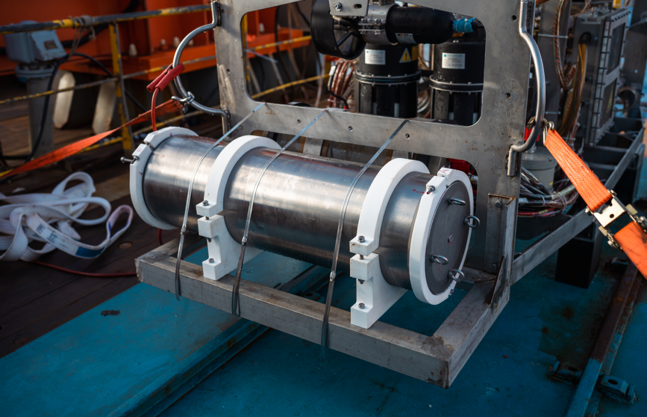 本次試驗采用的中繼器是深海所轉(zhuǎn)讓技術、江蘇新航船舶科技有限公司研制,最大工作水深為6000米,可提供電力、通信等多種通用接口,能搭載或者掛載多種類型的裝備、儀器、模塊開展深海作業(yè),如電視抓斗、科學類儀器等。該裝備曾經(jīng)搭載電視抓斗在應急救援航次中發(fā)揮了重要作用,充分驗證了其各方面性能。