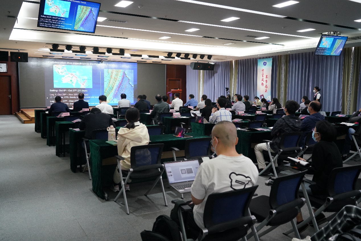 會議以“嚴(yán)謹(jǐn)求實、團(tuán)結(jié)協(xié)作、拼搏奉獻(xiàn)、勇攀高峰”的中國載人深潛精神為主題,聚焦深海深淵前沿科學(xué)研究,分設(shè)口頭報告與墻報交流兩個環(huán)節(jié)。各研究團(tuán)隊分別就海洋哺乳動物種群生態(tài)學(xué)與行為學(xué)、海洋環(huán)流與數(shù)值模擬、深海冷水珊瑚、人工合成流體包裹體、水合物成藏、深海微生物、深海與深淵魚類系統(tǒng)性研究等2022年度研究成果進(jìn)行了總結(jié)交流。中國-新西蘭聯(lián)合深淵深潛科考隊通過視頻連線,就國際首次在克馬德克海溝區(qū)域開展的大范圍、系統(tǒng)性載人深潛調(diào)查最新發(fā)現(xiàn)進(jìn)行了匯報交流。