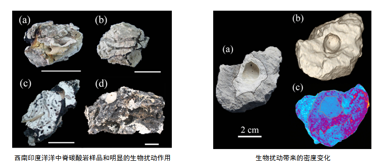 生物擾動(dòng)作用是海洋沉積物中的常見(jiàn)現(xiàn)象,能夠促進(jìn)沉積物和間隙水之間的物質(zhì)交換,是沉積物地球化學(xué)元素重新分布的營(yíng)力之一。為探索生物擾動(dòng)作用和深海碳酸巖成巖作用之間的關(guān)系,中科院深海科學(xué)與工程研究所彭曉彤研究員團(tuán)隊(duì)對(duì)采集自西南印度洋洋中脊的深海碳酸巖進(jìn)行了X射線(xiàn)斷層掃描、電子顯微鏡以及元素同位素地球化學(xué)研究。結(jié)果表明,該碳酸巖成巖過(guò)程伴隨的生物擾動(dòng)作用促進(jìn)了深海碳酸鹽礦物的溶解和重結(jié)晶過(guò)程,驅(qū)動(dòng)了深海碳酸巖成巖作用的發(fā)生。以上認(rèn)識(shí)不僅有助于拓展對(duì)深海碳酸巖成巖作用的理解,也加深了對(duì)深海底棲生物活動(dòng)和地質(zhì)過(guò)程互相作用的認(rèn)識(shí)。