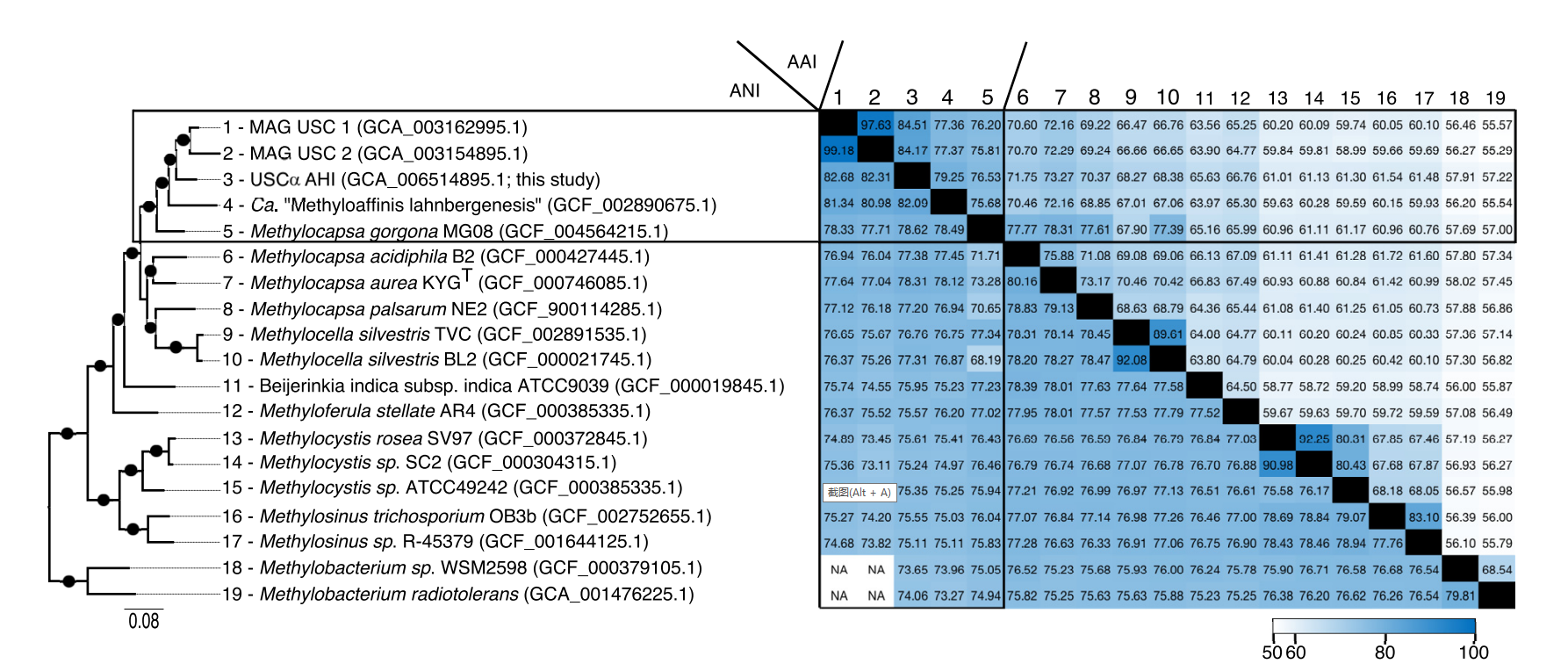 拜葉林克氏菌科甲烷氧化菌與USCα AHI的基因組比較(Rusley et al.,2019)