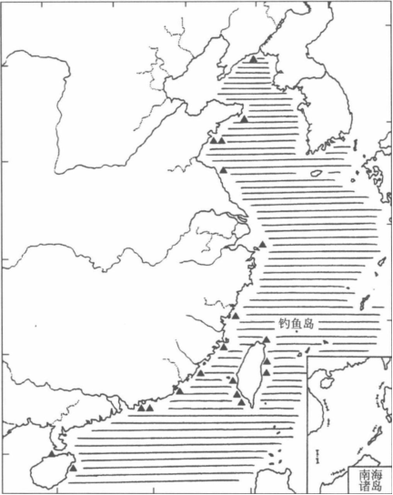 圖5. 我國海域抹香鯨的潛在分布及擱淺/捕獲地點(圖片來源:王丕烈《中國鯨類》)
