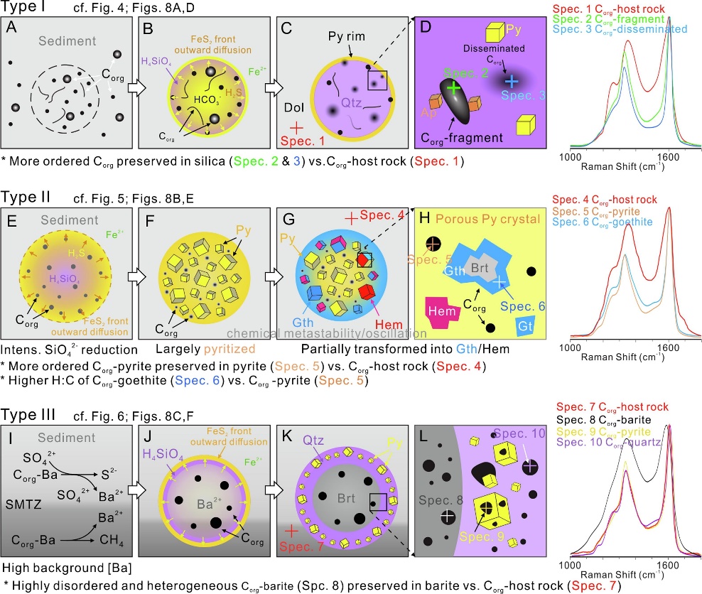 拉曼光譜展示硅質結核內部礦物特征及有機分子結構的微尺度差異