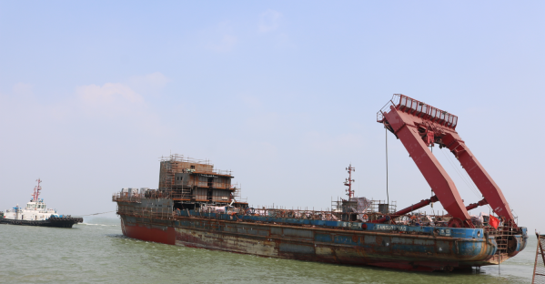 探索一號此次進塢塢期共計12天,在經過抽水、排墩、放水等一系列塢前準備工作之后,9月3日9時探索一號在拖輪拖引下進入塢位。9月4日下午新船體兩個分段被吊入塢內,隨即開始合攏口的準確對接,在完成焊接合攏工作并報驗合格后,于9月6日開始上建分段搭載工作,并在塢期結束前完成了36%的上建分段搭載。新船體出塢后將停靠在4號泊位繼續上建搭載工作和輪機、電氣、舾裝、涂裝、內裝等工作。
